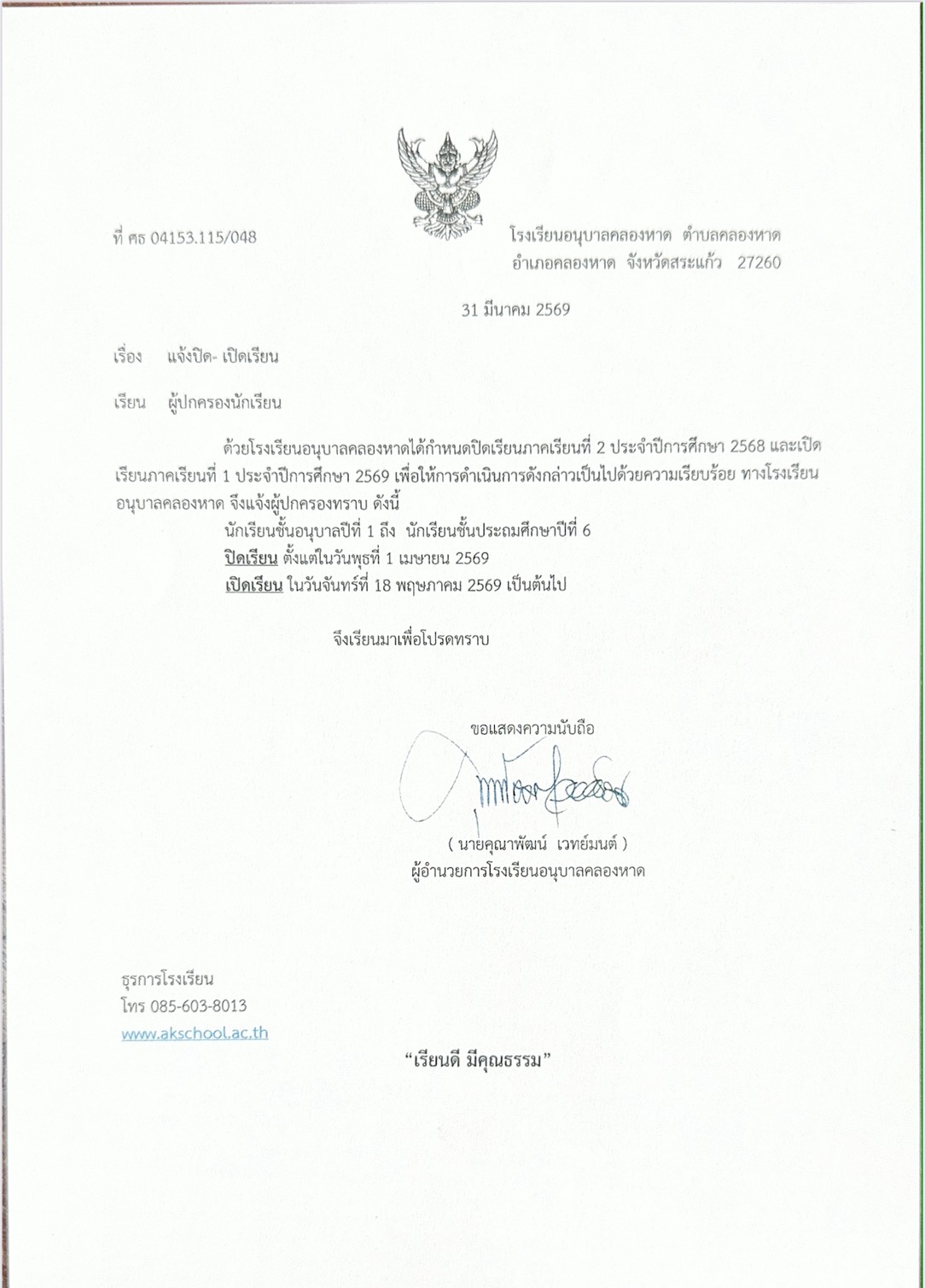 กิจกรรมสรงน้ำพระ และรดนำดำหัว ขอพร ท่านผอ.คุณาพัฒน์ เวทย์มนต์ สืบสานประเพณีไทย เนื่องในวันสงกรานต์เมษายน 11, 2569/No Comments